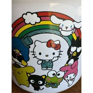 Silver Buffalo Sanrio Hello Kitty and Friends Featuring My Melody, Keroppi, Chococat, Pompompurin, Tuxedo Sam, Cinnamoroll, and Badtz-Maru Rainbow Glitter Ceramic Camper Mug, 20 Ounces