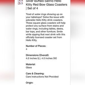 Silver Buffalo X Sanrio Hello Kitty "Hello" Glass Coaster Set Of 4