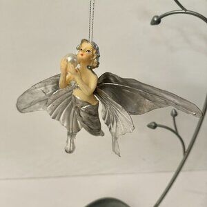 Silver Butterfly Fairies Pearl Set (5) Christmas Ornament Resin Holiday RARE