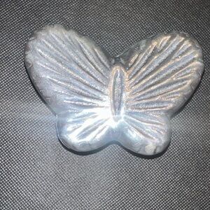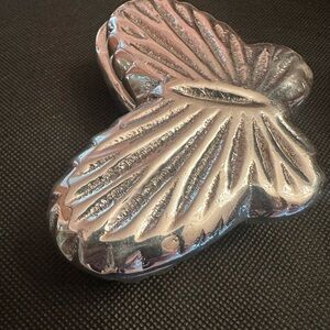 Silver butterfly trinket box Width 3-4” depth 1/2” Excellent condition Felt pads on underside Vintage