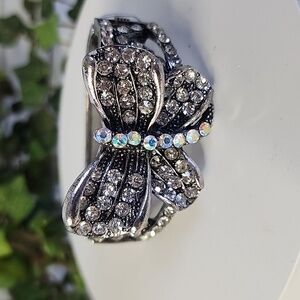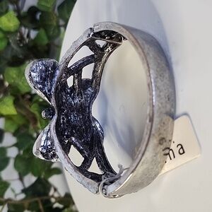 Silver Butterfly with AB CZ Crystals Clamper Hinge Bracelet