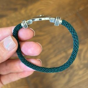 Silver medallion with a clear stone resembling a compass. The charm attaches securely to the rope. Inscribed: EXPLORE, DREAM, DISCOVER