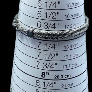 Material: Silver-tone twisted cable, faceted glass stone, rhinestones