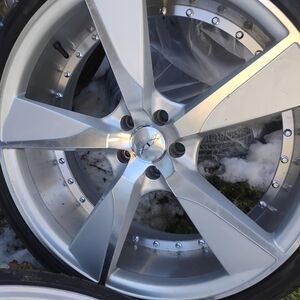 Enhance your vehicle's style with this sleek silver car wheel rim. Designed for durability and performance.