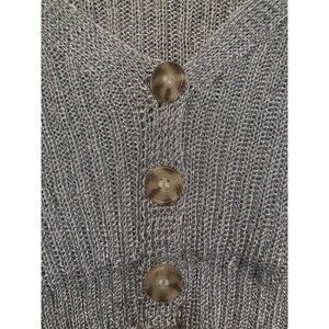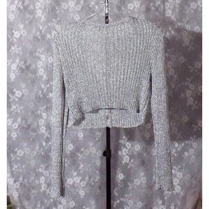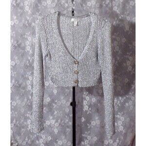 Silver Cardigan Cropped Knit V-Neck Long Sleeve Space Chic Glam Size Small