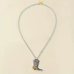 Product features: Pendant necklace with carved cowboy boot detail in silver tone.