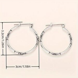 Silver Carved Skinny Hoop Earrings Delicate Flower Retro Etched Classic Thin New