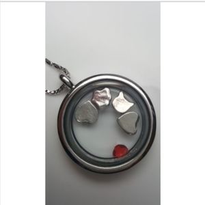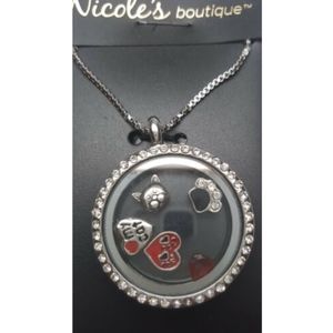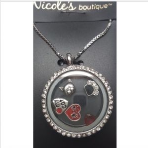 Silver Cat Lover 22" Pendant Locket Necklace I love my cat Heart rhinestones