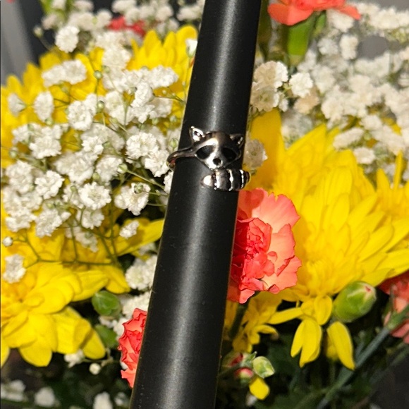 Charming silver ring featuring a cute cat design. Perfect for animal lovers.