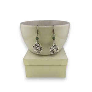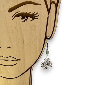 HANDCRAFTED -- antique silver-tone Celtic knot tree earrings dangle beneath a green aventurine faceted cube gemstone that is wire wrapped at the bottom. The drop is about 2" from surgical steel earwires for sensitive pierced ear lobes. These are hand crafted. New, never worn. Excellent condition. See pictures.