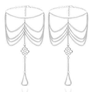 Silver Celtic Knot Multilayered Adjustable Anklet Foot Chains - Set of 2