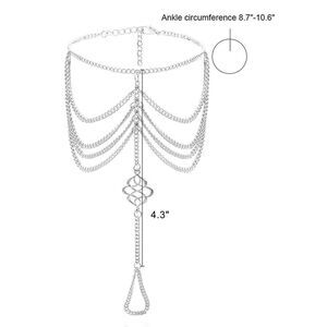 Brand New - 2 Piece Pair of Adjustable Multi Layered Silver Celtic Knot Design - Anklet Bracelets - Ankle Bracelets - Barefoot Sandal Chains - Bohemian Style