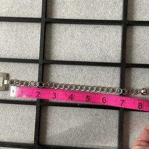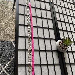Very good condition. No tarnishing. Well made. Has some weight to it. Not a cheap, lightweight metal belt. From link to link 29” approx. Approx. 8” extender not included in that measurement. Pic measurements approx.