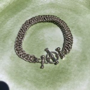 Elegant silver chain bracelet with toggle clasp. Perfect for any occasion.