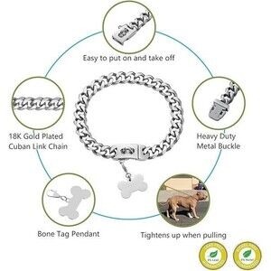 * [Choker Collars] : The heavy duty chain is made of solid 316L stainless steel with thick silver plated. Collars are very sturdy, durable, no rusting, or tarnish. It can handle the rough breeds.