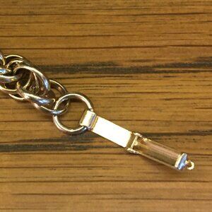 Selling a used Silver Chain Link Bracelet in excellent condition the clasp is in excellent working condition. This is not a real silver or sterling silver bracelet . open is 7.5 inches long and when closed the opening is about 2 1/4".