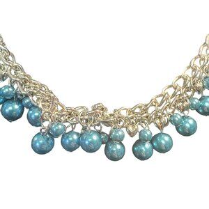 Elegant and versatile, this necklace and earrings set features a silver chain adorned with blue bead accents. Ideal for adding a touch of sophistication to any outfit.