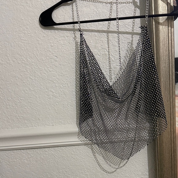 Stylish silver chainmail halter top. Perfect for a night out.