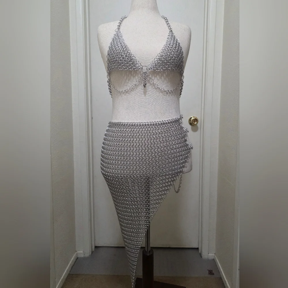Stylish silver chainmail set. Perfect for festivals or beachwear. Handmade for approx size 6-10.