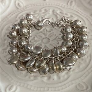 Glamorous Silver Shimmery Bead Charm Layered Bracelet Whimsical Bohemian