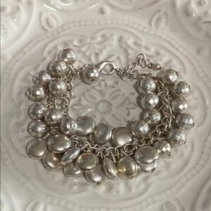 Silver Champagne Shimmery Disco Bead Charm Layered Bracelet Whimsical Vintage