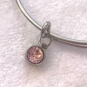 Silver Charm Bracelet With Pink Crystal Charm Expandable 2”- 3.5”