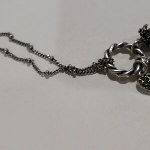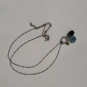 This silver-toned charm pendant necklace adds a touch of elegance and meaning to your jewelry collection. This unique piece is perfect for any occasion, featuring a beautiful Tree of Life pendant, a faceted black gemstone, and a sparkling green heart charm. NWOT