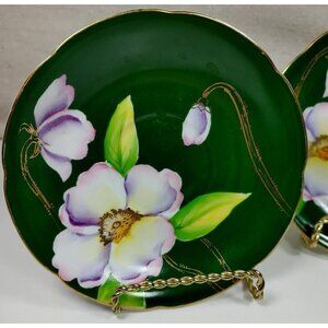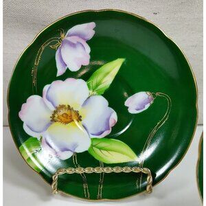 Silver China Occupied Japan Green Hand Painted Flowers Gold Trim Saucer Set Of 3