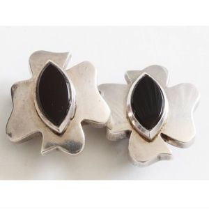 Preowned, vintage Taxco Mexico 3-piece Sterling Silver and Onyx modernist eagles choker necklace & earrings set, most likely made in the 1970s. A pretty vintage set that can be worn alone or together - so easy to wear and style!