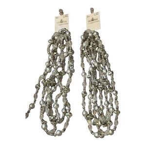 Silver Christmas Decoration Bundle lot collection of silver garland and bells. Vintage Christmas tin