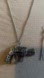 Stylish silver & chrome gun pendant necklace with matching chain earrings. Perfect for a bold look.