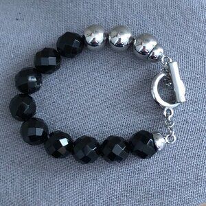 Silver Chrome & Jet Bead Retro Vibe Chunky Bracelet