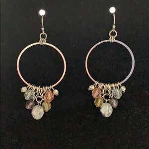 Silver Circle Earrings with Dangling Beads