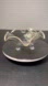 Great vintage condition consistent with its age — clear glass with etched flowers, sits on three applied feet.