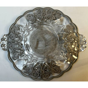 Silver City 25th Anniversary Glass Handled W/Silver Floral Overlay Cake Plate