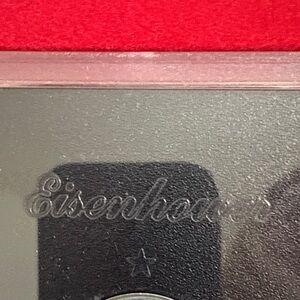 Elegant silver coin display case with a sleek black background. Perfect for collectors.
