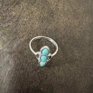 Elegant silver ring featuring stunning turquoise stones. Perfect for adding a touch of color to any outfit.