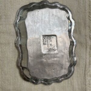 Silver Colored Bowl Tray Scalloped Edges Decor Fruit Rectangle Pretty French EUC