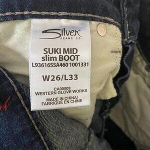 Silver Company Women's Suki Mid Slim Super Stretch Bootcut Dark Wash Jeans Size 26 33. Measurements Waist: 28" Inseam: 33" Rise: 8" Offers always welcome! Measurements are approximations taken while hanging