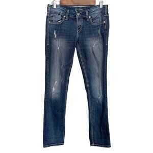 Silver Company Women's Distressed Contrast Stitch Aiko Skinny Jeans Size 28 29