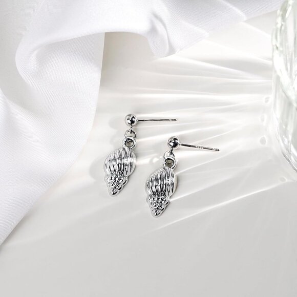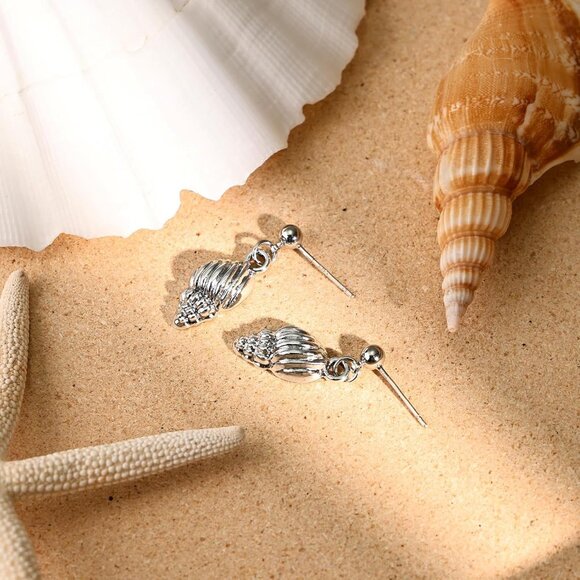 Features: Delicate stainless steel studs with a raised spiral conch shell texture that mimics natural seashells. Lightweight, hypoallergenic, and designed for comfortable wear all day long. The push-back posts keep them secure during poolside lounging or ocean adventures.