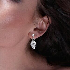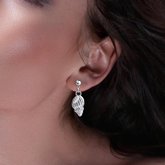 Silver Conch Shell Stud Earrings — Perfect for beach days or casual ocean-inspired looks.