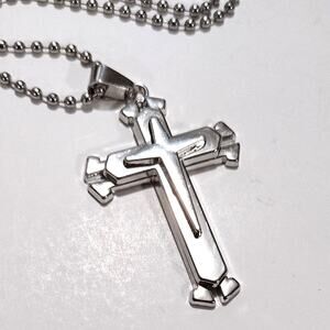 Silver Cross Christian Necklace (22" in. chain) layered Trinity Christmas Birthday Gift - NEW!