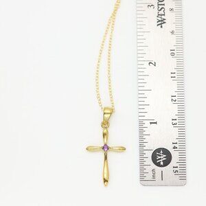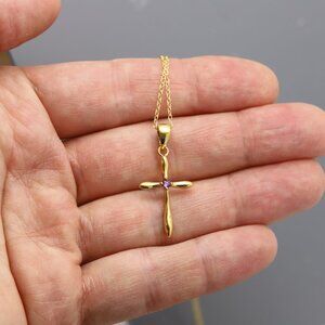 Silver Cross Natural Purple Amethyst Cross Pendant plated with 14k gold