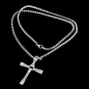 Silver Cross Necklace Fast & Furious CZ Diamonds Christian Vin Diesel Faith Gift