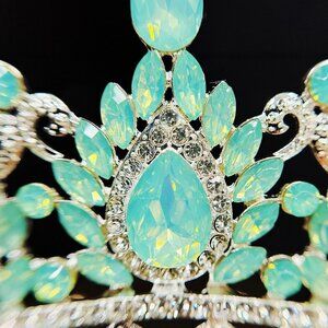 Color: Green gemstones, rhinestones and Silver-plated crown.