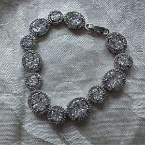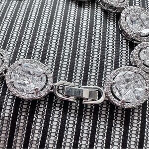 Vintage-Inspired Silver Crystal Bracelet with round and oval cut stones 6-7 4343