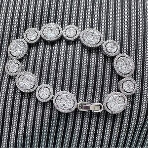 This exquisite silver tone bracelet is in excellent condition no issues. This item will fit a wrist size 6 loose up to a 7 MAX.