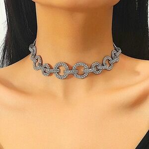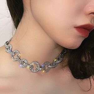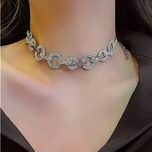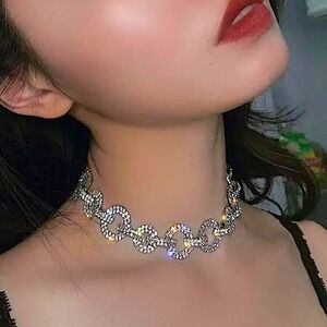 Silver Crystal Choker New Years Eve Rhinestone Party Wedding Statement Piece