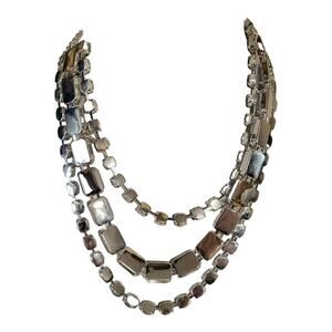 Silver Crystal Costume White Crystal Necklace 3 strand adj size